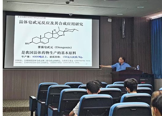 田伟生教授从有机合成化学的基础认知出发,系统阐述了该领域的核心原理与前沿动态。他重点介绍了在甾体化学领域我国第三代学术传承的研究成果,并深入讲解了 “资源化学”学科建立过程及其关键应用,包括天然资源化合物甾体皂甙元反应,以及人工资源化合物氟烷基磺酰氟反应在药物、农药合成中的应用。他提出的“共生反应”概念,为资源化合物的高效利用提供了新思路。此外,他还结合自身经验,分享了研究生培养与科研团队建设的心得,强调理论与实践结合的重要性。