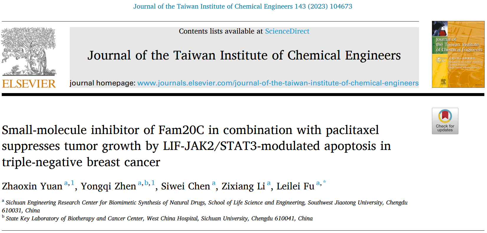 近日,符雷蕾研究小组在Journal of the Taiwan Institute of Chemical Engineers期刊上发表了题为Small-molecule inhibitor of Fam20C in combination with paclitaxel suppresses tumor growth by LIF-JAK2/STAT3-modulated apoptosis in triple-negative breast cancer的研究性文章(Volume 143, February 2023, 104673. 影响因子5.47)。爱迪影视