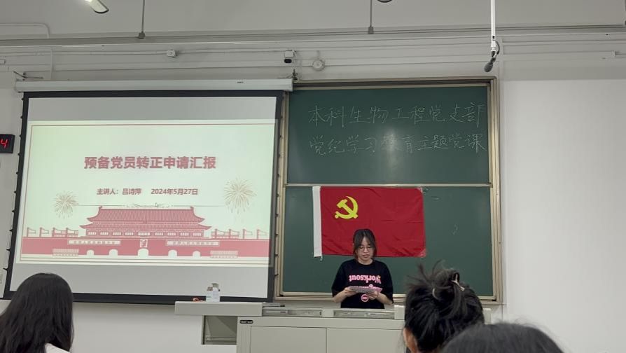 围绕党纪学习教育,结合学院特色,本科生物工程第一党支部本学期将开展“强化纪法教育,筑牢思想根基”校级示范性学生党支部特色活动。2024年5月27日晚19:00,该活动启动仪式在犀浦校区X2331举行。学院党委副书记、纪委书记朱炜为支部党员讲授党纪学习教育专题党课,支部书记潘星宇主持活动启动仪式及党员大会。