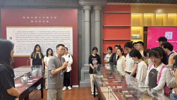 组织2025-01期党员发展对象来到犀浦校区图书馆开展“学百年校史·扬交大精神·做时代新人”主题党日活动,集体参观学习“印记百年——图书馆藏书印章展”。活动特邀图书馆文化育人与特藏古籍部杨永琪老师担任主讲,通过深入讲解中国铁路史、学校创办史及藏书印章史,带领青年学子回溯交大精神之源,感悟科学家精神的时代价值。活动特别设置复刻藏书印章实践体验环节,让同学们通过钤印历史印记,体悟交大文脉传承。