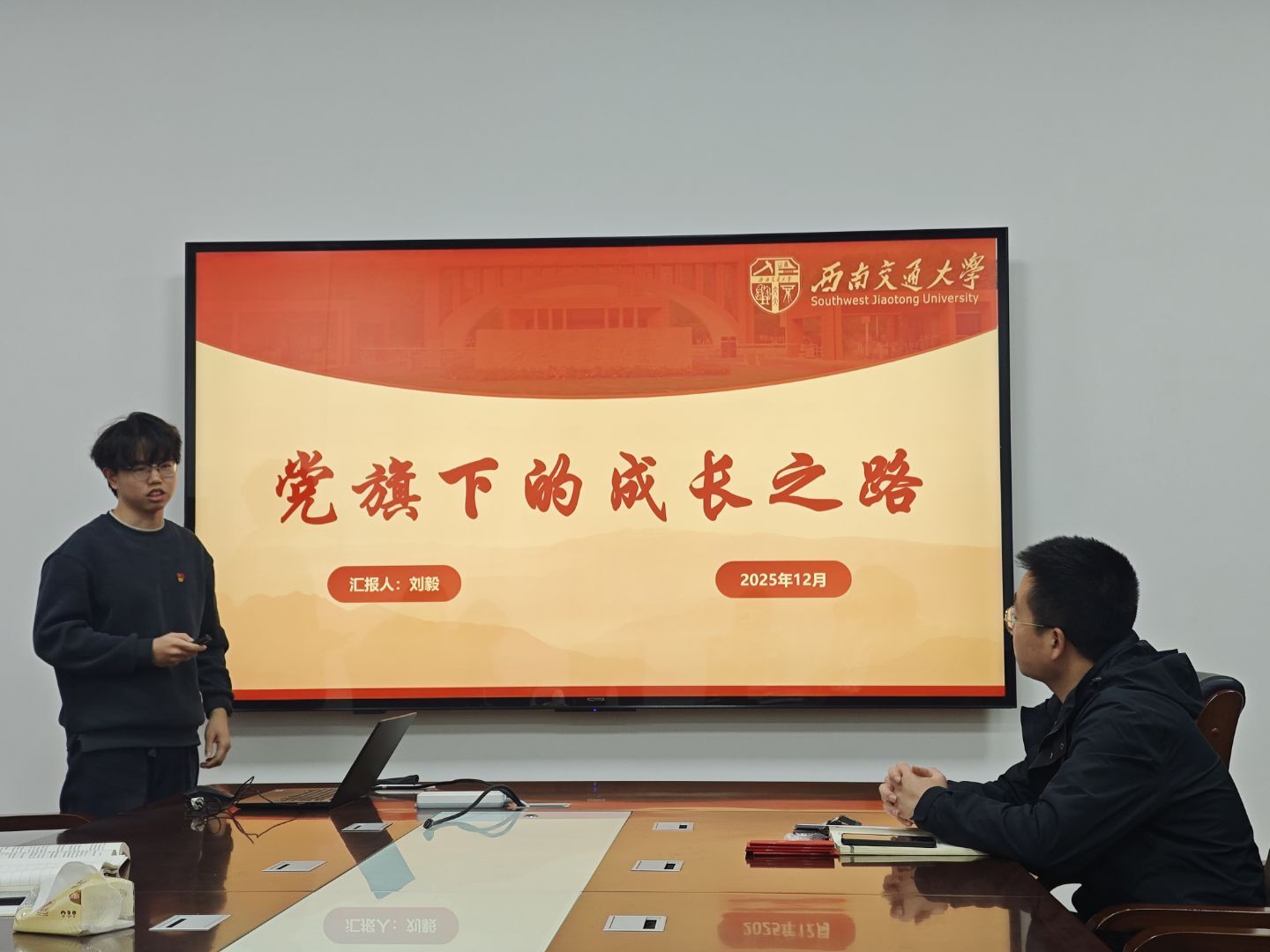 会议首先由陈琳同志讲授专题党课。她以 “交大五老” 事迹为切入点,系统讲解罗忠忱等五位教授的育人初心与治学坚守,深入阐释 “严谨治学、严格要求” 的双严传统,引导党员传承先辈精神、筑牢思想根基;随后结合校园考试违纪典型案例,领学学校考试管理及纪律处分相关规定,明确考试作弊的危害与处分标准,深刻剖析违纪行为对个人发展和组织形象的负面影响,强调青年党员需严守纪律底线,让规则意识成为成长成才的坚实保障。党课结束后,支部书记金鹏帆带领大家学习《党的二十届四中全会〈建议〉学习辅导百问》,进一步强化党员的时代担当与使命意识。