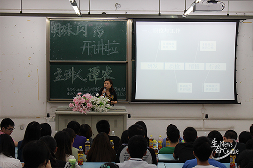 2014927日,由本科中药学生党支部、本科制药学生党支部和药学系教工党支部组织的明珠闪“药”课堂在犀浦校区X2416教室开讲。生命科学学院李卓慧书记,副书记罗妍妍,副院长谭睿,学院党委委员、教工党支部书记、工会主席胡久梅,以及学生支部指导教师孔琳、高鹏、魏源成等人出席讲座。