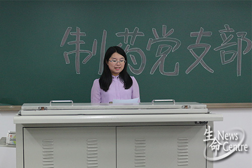 首先,党支部书记洪羚宣布会议开始之后,由拟发展的党员宣读入党志愿书,并请入党介绍人介绍此次发展对象的情况。郏文青、郑赵悦、罗会、冯乔、梁永志、龚代鹏、余少娟七名同学先后宣誓,并相互介绍情况。七名同学无论在学习上还是生活上均认真对待,态度端正,有责任心,并且关心集体,团结同学。之后,大会进入不记名投票表决环节。最后,表决结果为七名同学全部全票通过,正式接受为制药党支部中共预备党员。