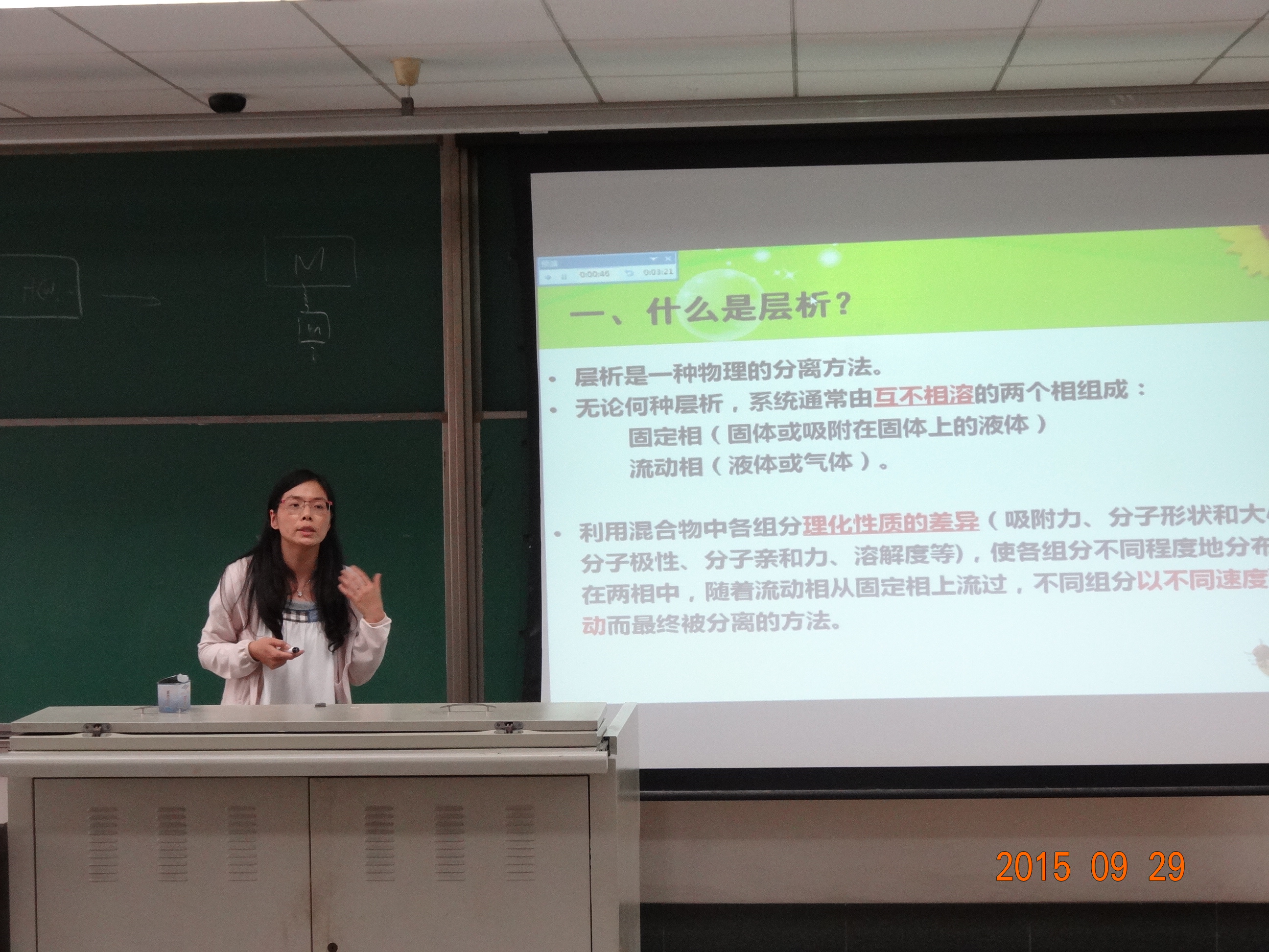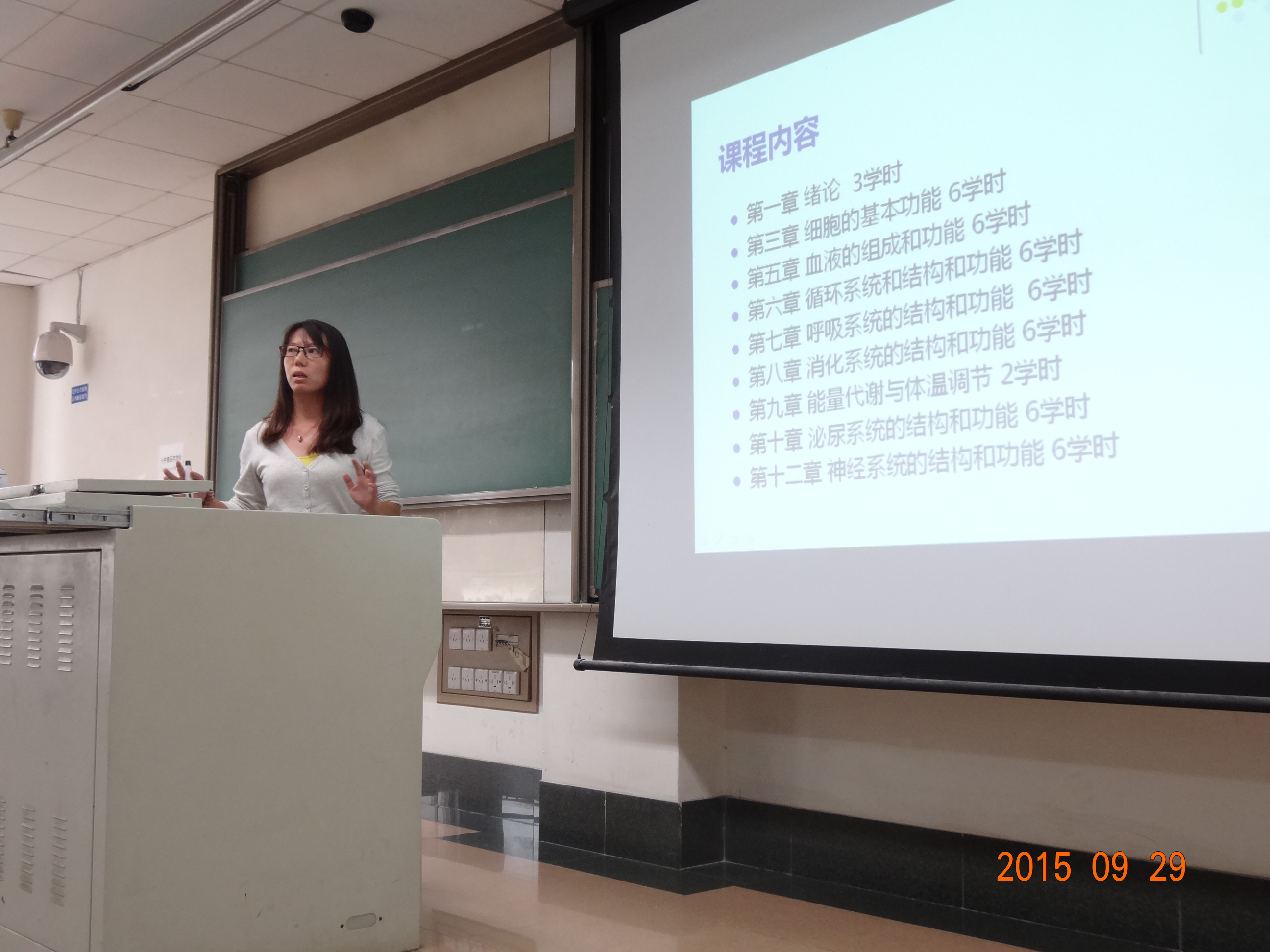 9月22下午首先在九里4305B、4308和4307A进行了各系初赛,选拔出了7位优秀教师进入下一阶段学院选拔赛。9月29日下午2:00,各系选拔出的教学优秀教师在4218进行学院选拔赛,竞赛由院长助理李遂焰主持,院党委书记李卓慧、学院教学督导组管棣、工会主席胡久梅及各系中心主任作为评委出席了比赛。参赛的7位老师分别是:蒋亚、王晓敏、魏桂花、郭志云、刘新荣、孟涛和万军。老师们分别对自己主讲的课程《工程化学》、《生物信息学》、《蛋白质与酶工程》、《生物反应工程》、《药剂学》、《解剖生理学》等进行了精彩纷呈的展示。讲课结束后,评委们按照《教学设计评分表》、《课堂教学评分表》,就教学设计质量、课堂教学质量、教学能力等标准评选出了获得推荐奖和鼓励奖的教师。获得推荐奖的参赛教师将代表学院参加学校复赛。
