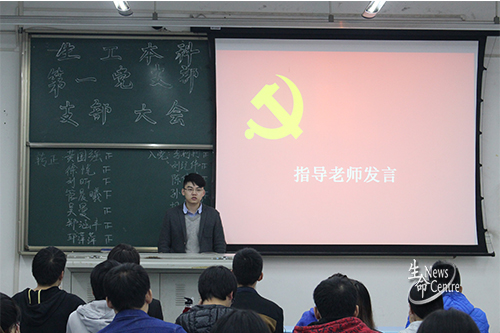 生物工程本科第一党支部大会在X2525正式开始,院团委副书记魏源成出席本次会议。