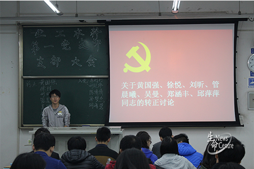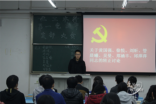 会议的主要议题是关于讨论预备党员黄国强、徐悦等七名同志转正及李珂珂,刘纪伟等五名积极分子的入党的问题。在主持人简短地介绍完会议流程后,大会正式开始。