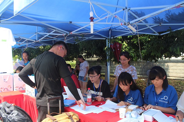 党员志愿服务队准时到达迎新地点,准备迎接第一位新生的到来。从迎新第一天开始直至最后一天,各位党员分工明确、工作交接清楚,耐心地解答着每一位新生和家长的各种疑问,积极地引导来自全国各地的新生入住寝室休憩,迎新工作有条不紊地进行。尽管迎新期间天气阴晴不定,或高温酷暑,或倾盆大雨,但党员同志们依然坚守岗位,埋头苦干毫无怨言,充分展示了党员同志不畏艰辛的优良作风和为人民服务的奉献精神。