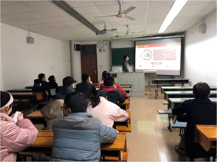 125日晚,学院2017级、2018级硕士研究生党支部在逸夫馆4305A教室联合开展了“认真学习《中国共产党支部工作条例(试行)》推动党支部高质量标准化建设”主题党日活动。活动由2017级研究生党支部书记孙源同志主持,2018级党支部书记王珏同志主讲,两个支部的党员参加了活动。