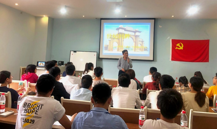 而后由学校校史专家梁锦唐老师进行了“明校史,知校情,筑校魂”校史校情校训专题教育,梁老师通过对校史的讲解向各位预备党员同志传达了自强不息、不屈不挠的精神。