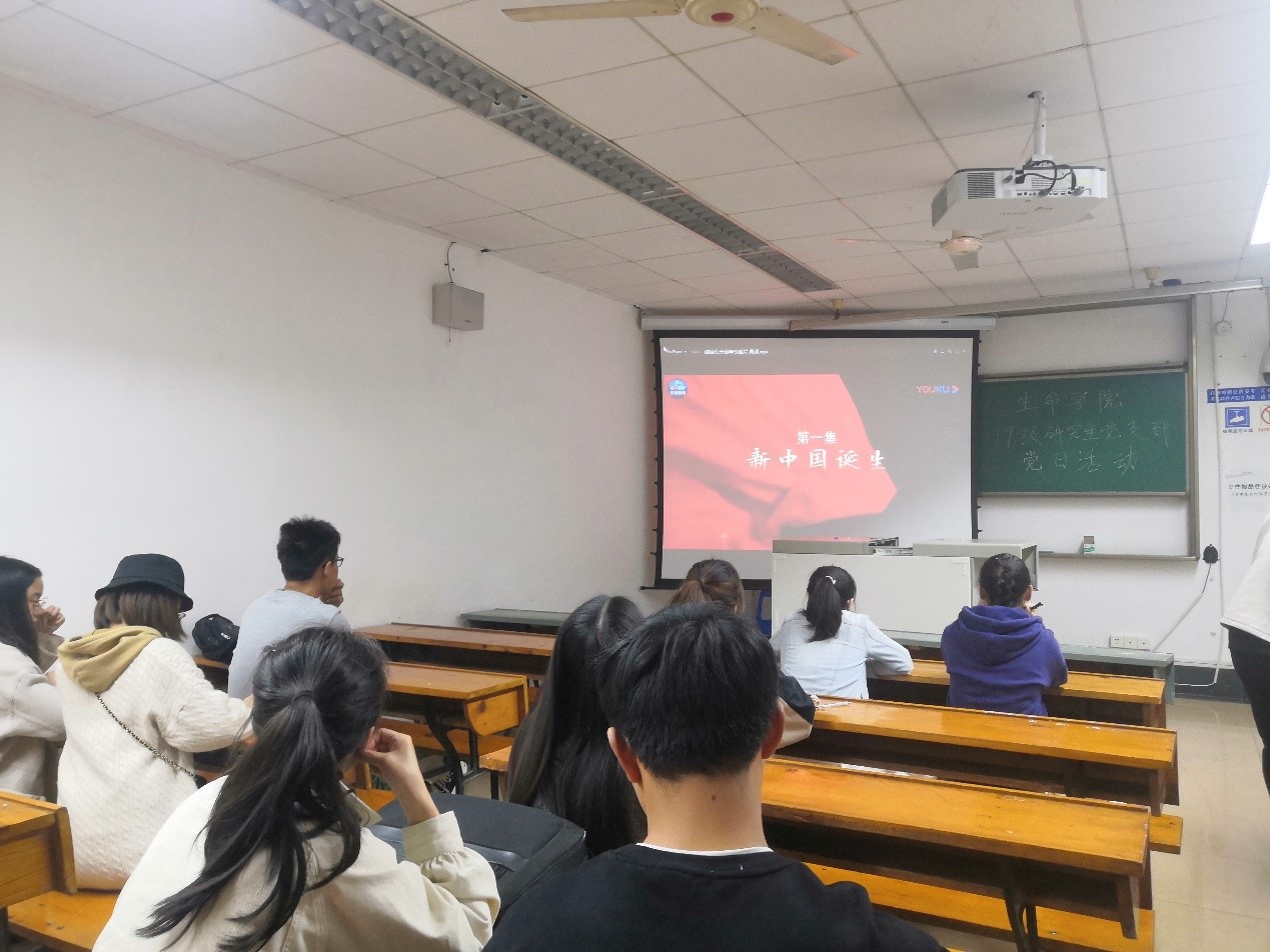 2019级研究生党支部在4304a教室展开了“回顾共和国70周年辉煌历程”的党日活动,活动由党支部书记吴京川同志主持。