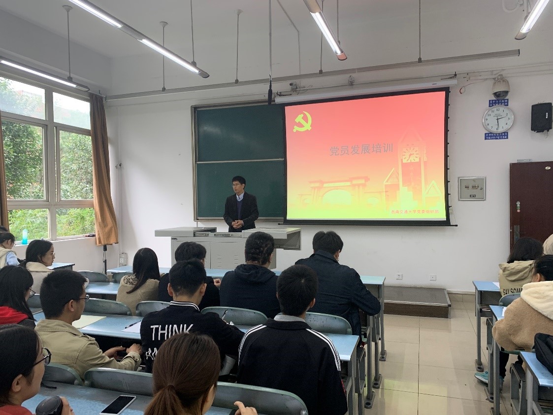 学生党员讲授党课,党课主题为“如何树立正确入党动机,争做合格共产党员”。