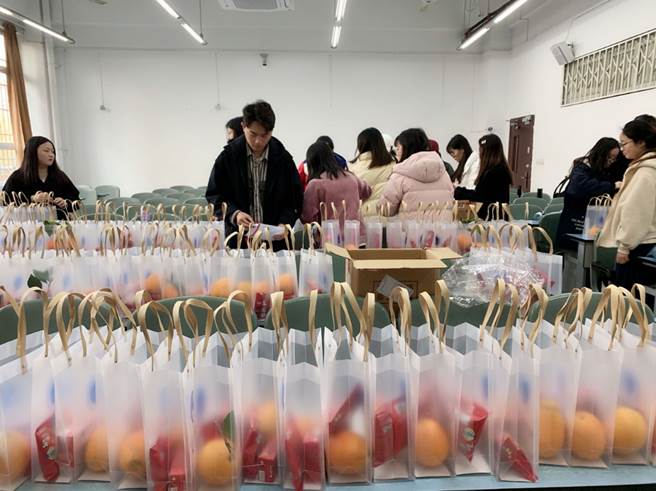 在了解考研学子的需求后,党支部成员共同商议礼包内容,确定礼包内有:明信片、签字笔、替换芯、涂卡套装、橡皮、橙子、旺仔牛奶、旺仔牛奶糖。礼包采用结实耐用的PVC透明手提袋,以便大家收藏或循环使用。手提袋正中印有学院院徽,其下方写有“功不唐捐、玉汝于成”,预示着同学们的付出一定都会有收获。