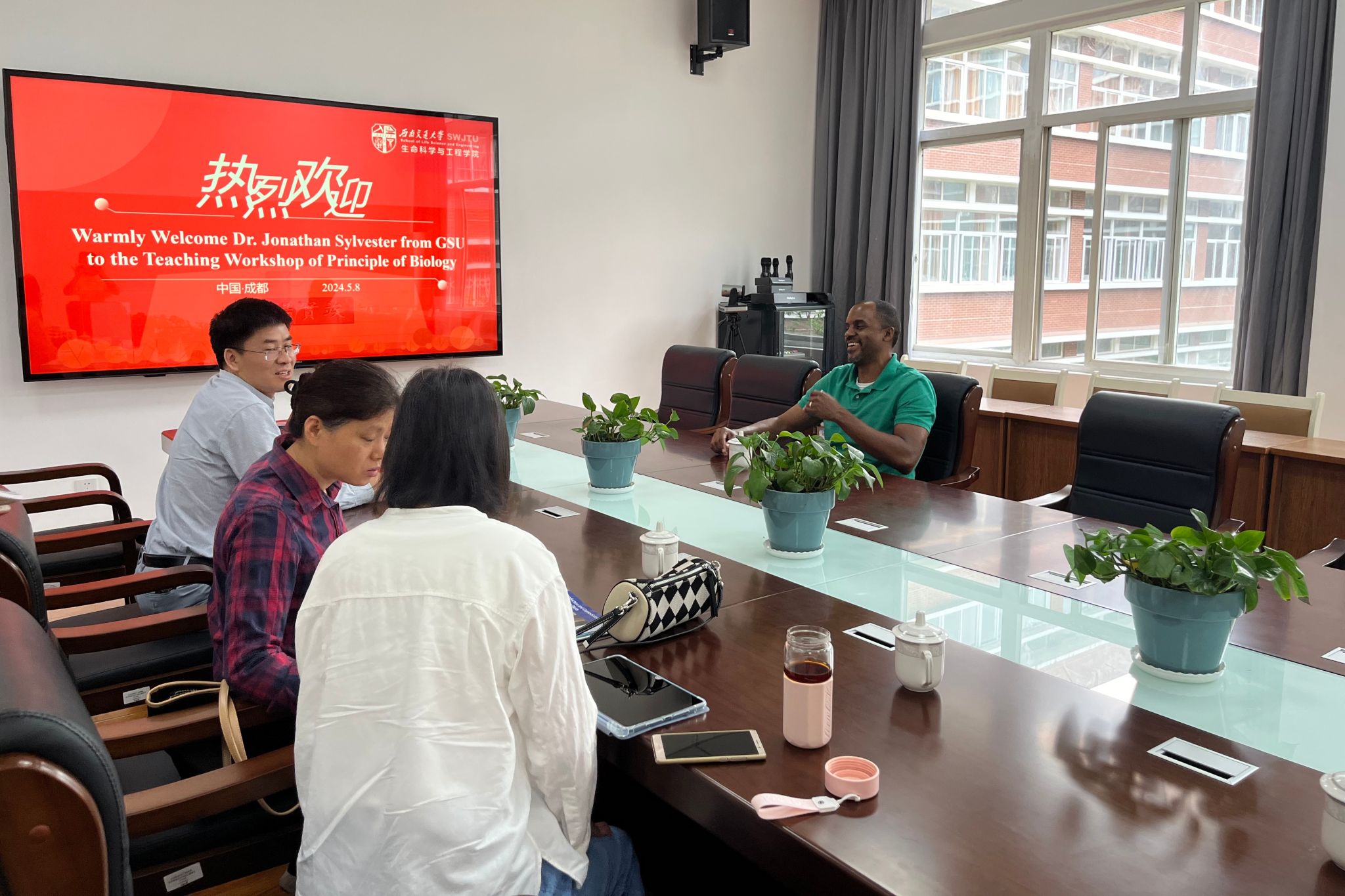 荣幸地邀请到了美国乔治亚州立大学(GSU)生物系的Jonathan Sylvester博士,在犀浦校区X2314会议室,举办了主题为“生物学原理教学研讨会”的专业交流活动。 本次研讨会聚焦于生物学原理课程教学的多个关键领域,旨在通过国际视角,提升教学内容的深度与广度。爱迪影视