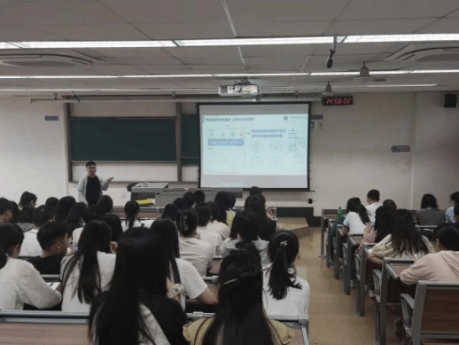 首先,朱炜老师围绕毕业、就业相关事宜做讲解,介绍学院往届毕业生的工作去处。分析各个行业的优缺点以及未来发展前景,以一位“师兄”的身份向同学们传授就业经验,希望大家树立正确的择业观与就业观,主动积极就业。