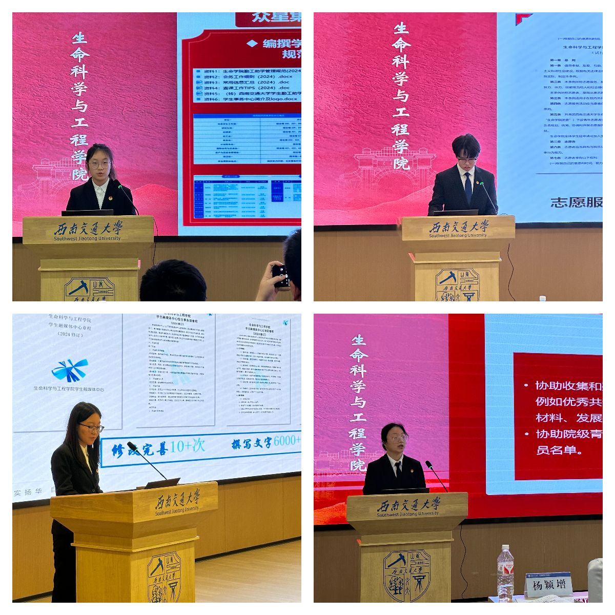 接着,团学组织进行了2024年年终述职答辩。各部门负责人就过去一年的工作进行了总结汇报,并分享了工作中的经验和教训,指导老师们也提出了宝贵的建议。述职环节不仅展示了团学组织的工作成果,也为今后的工作提供了借鉴和参考。
