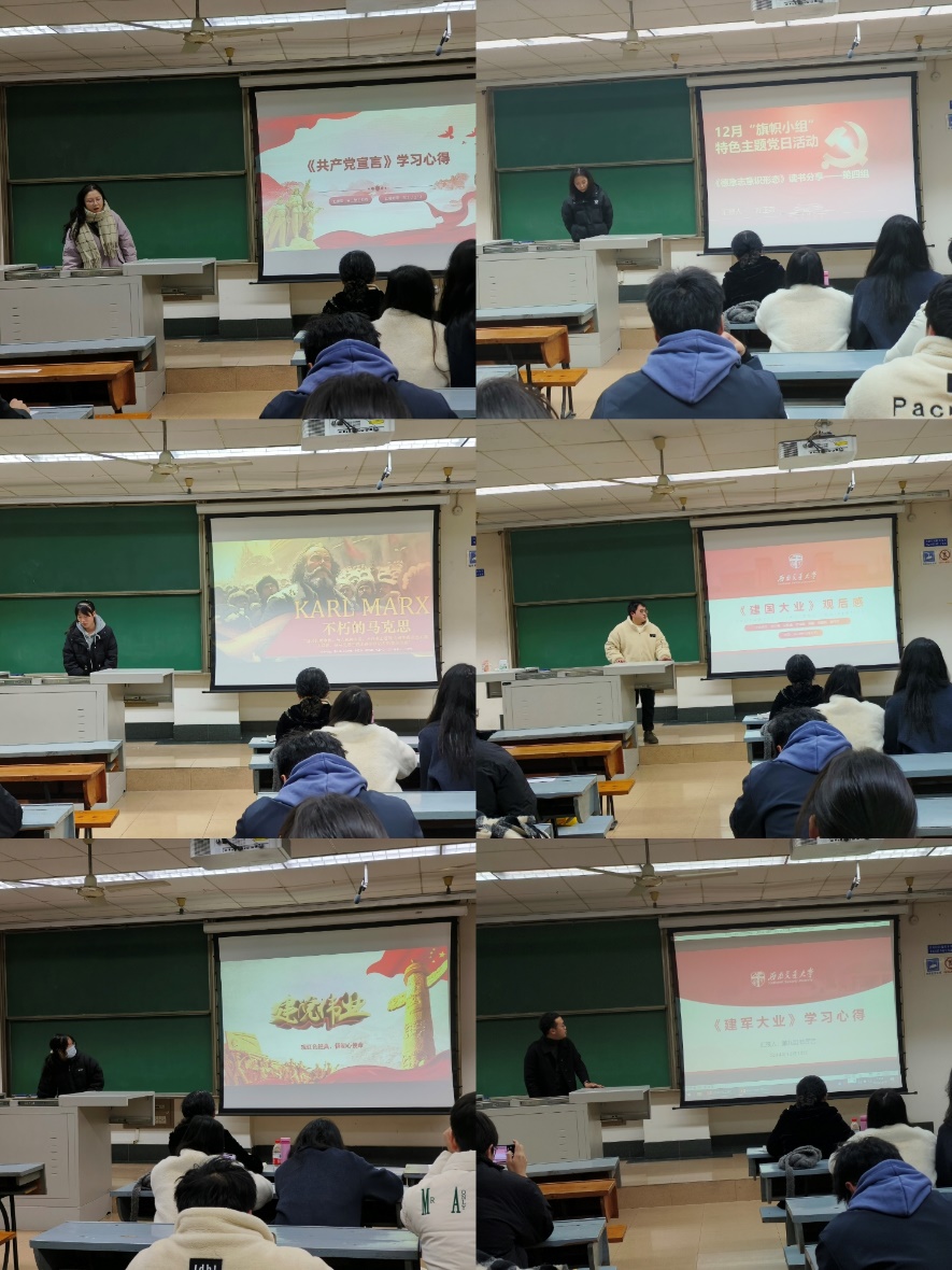 研究生第五党支部在九里校区4407B教室成功举办“旗帜小组”马克思主义理论学习活动。本次活动以“深入学习贯彻党的二十大精神及党的二十届三中全会精神”为主线,通过理论学习、成果分享和思想交流,引导研究生党员及群众深化对马克思主义理论的理解,凝聚奋进力量。
