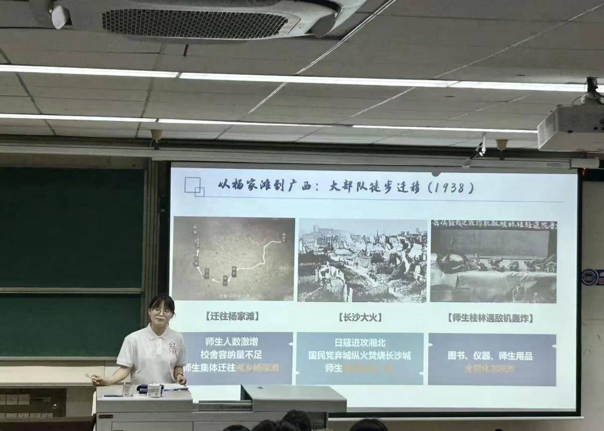 大会首个环节,特邀研究生“红路理论学讲团”成员袁秋月同学就“八千里路云和月——我校迁校建校的曲折历程”主题作校史校情专题介绍。
