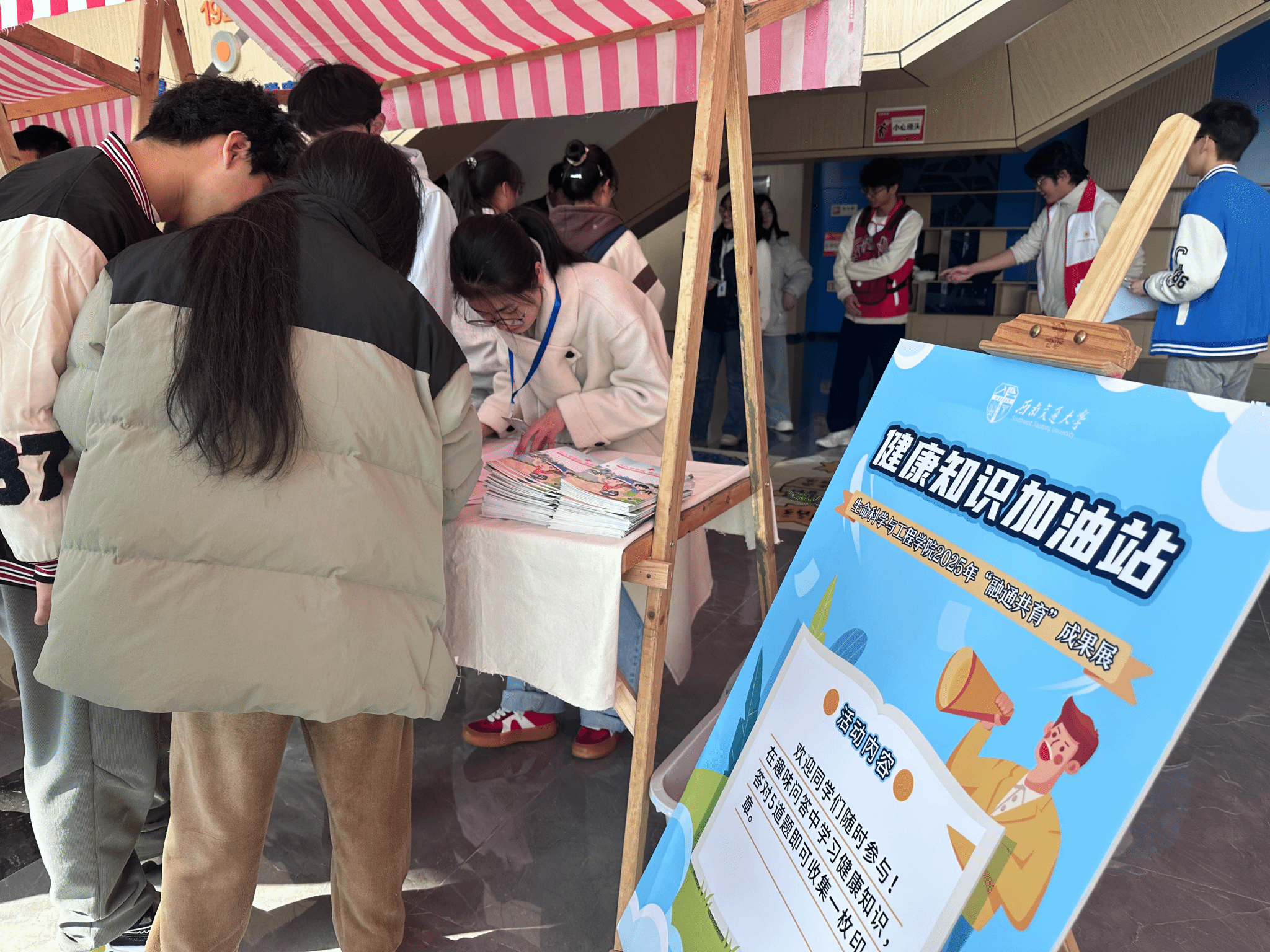 为使知识真正转化为可用的技能,活动特别设置了实践环节。在学院“融通共育”成果展现场专门设立“健康知识加油站”互动环节,同学们不仅通过趣味问答巩固了理论学习,更在校红十字会志愿者的指导下进行了“一对一”的急救技能实操。志愿者借助模拟人教具,对同学们的按压位置、深度、频率及手法进行了细致教学与个性化指导,有效帮助大家跨越了从“知道”到“做到”的壁垒。