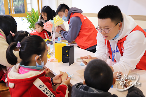 活动现场分为“折纸成鸢,花随纸新”“十里明月,解语生花”“龙灯花鼓,泼墨清影”“金吾不禁,玉漏无催”四个活动区域,参加活动的小朋友们事先已经在网上预约,每个区域有5位志愿者带领小朋友有序进行活动,这吸引过往居民驻足观看、咨询。猜灯谜、教学毛笔字画等活动大受欢迎,现场特别热烈,小朋友争先恐后地参加。志愿者们一边安排活动进行,一边耐心讲解与活动相关的传统文化,得到小朋友和其家长们的好评赞许。