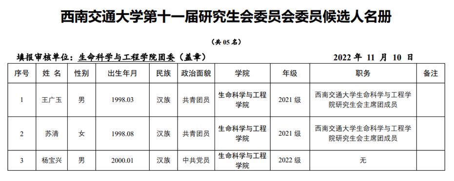 根据校团委《关于做好爱迪影视 第十一次研究生代表大会筹备工作的补充通知》要求,在征求学院研究生会意见后,经班级团组织推荐,由学院团组织考察,现将爱迪影视 参加爱迪影视 第十一次研究生代表大会代表名单及爱迪影视 第十一届研究生委员会委员候选人名单公示(见附件)。推举结果公示如下