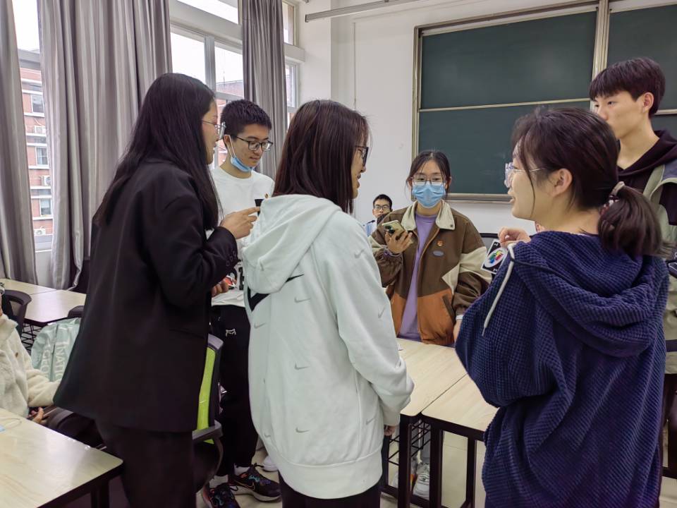 讲解结束后,进入实践环节。组织委员江昱杲讲解完规则后,同学们分组进行小竞赛,以重走长征路的形式体验先辈的艰辛与不易。快问快答等环节将党史和校史结合,让历史生动化、形象化,调动同学们的积极性,加深同学们对红色故事及校园文化的理解,同时加强了班级凝聚力,营造积极向上、健康文明的活动氛围。