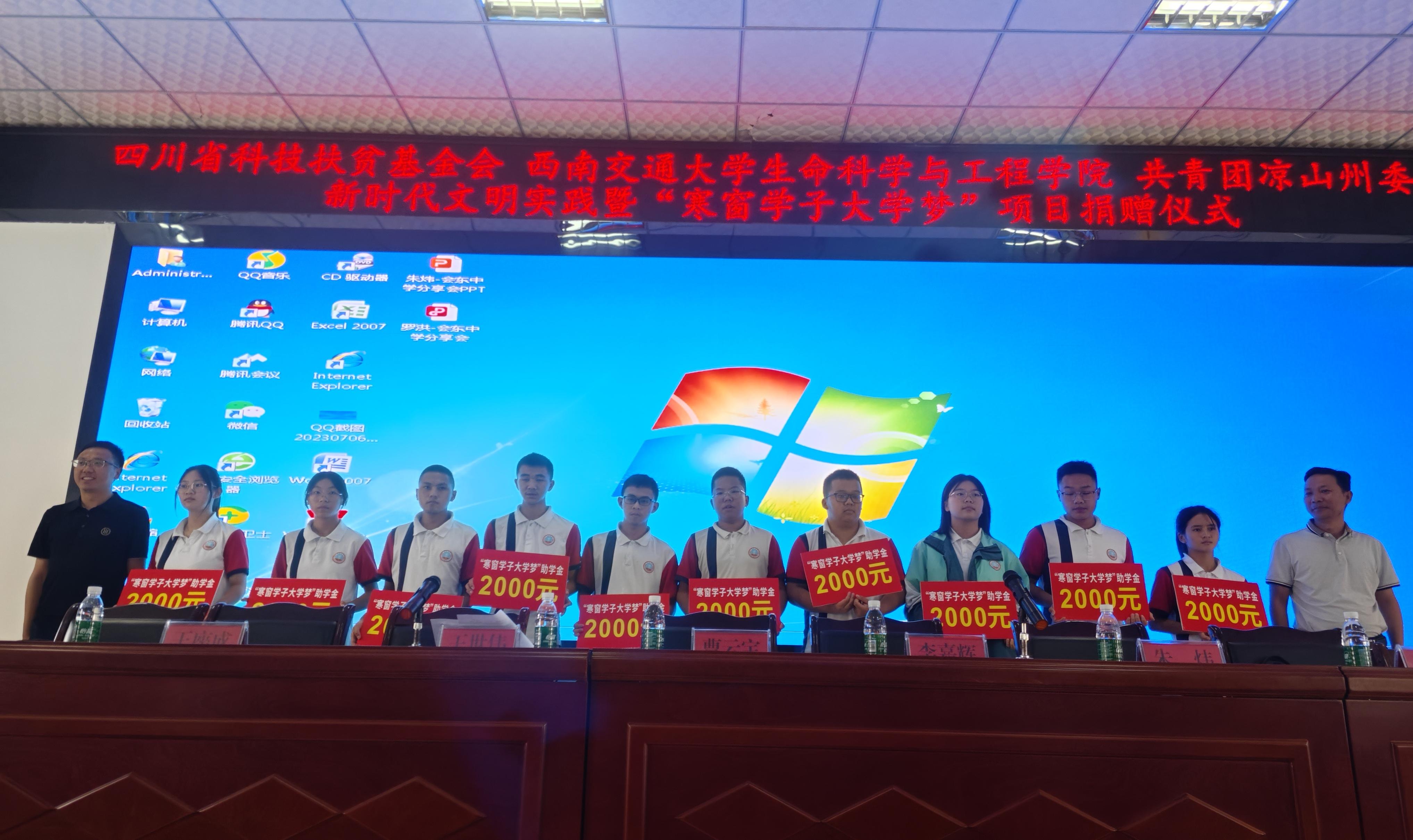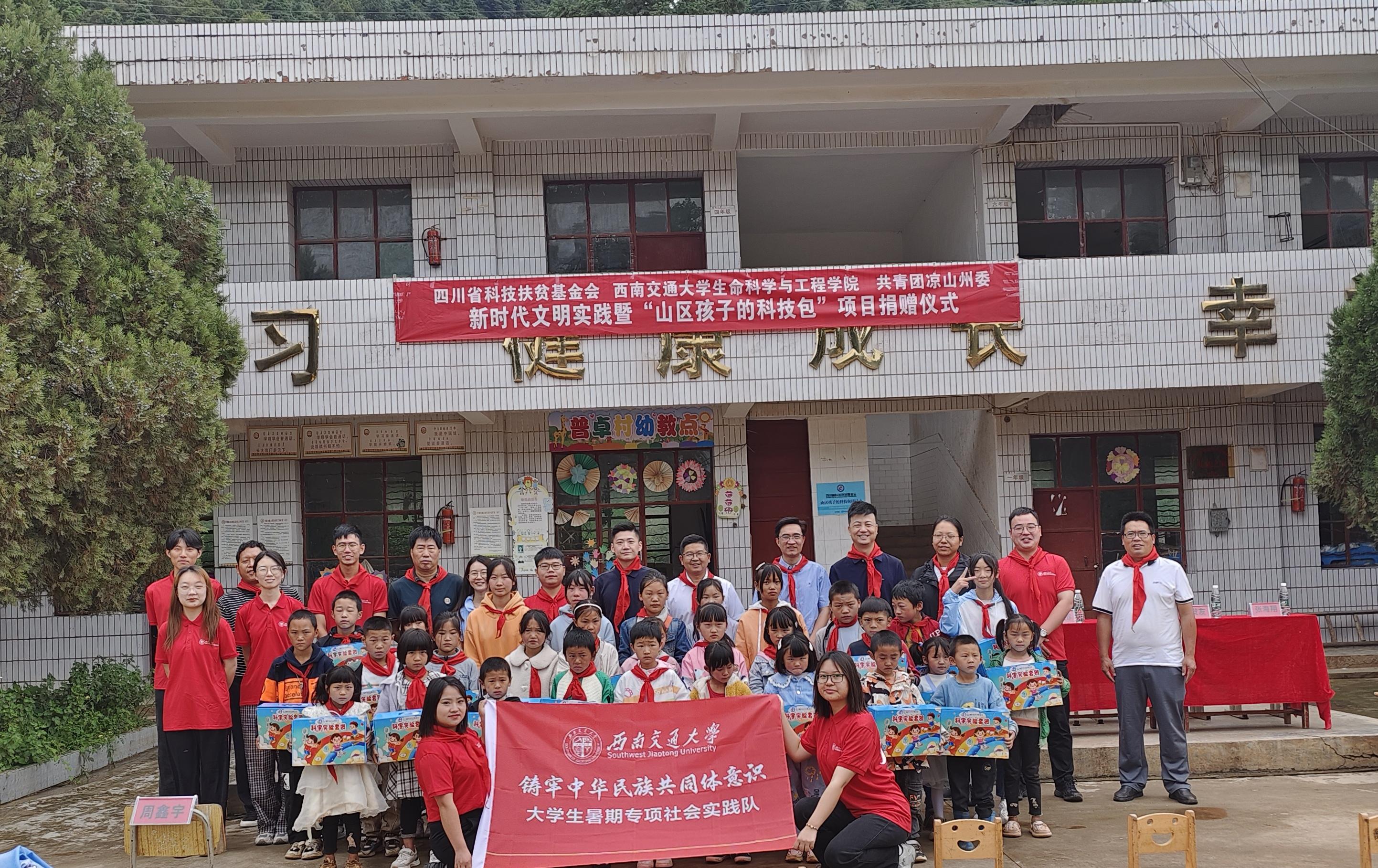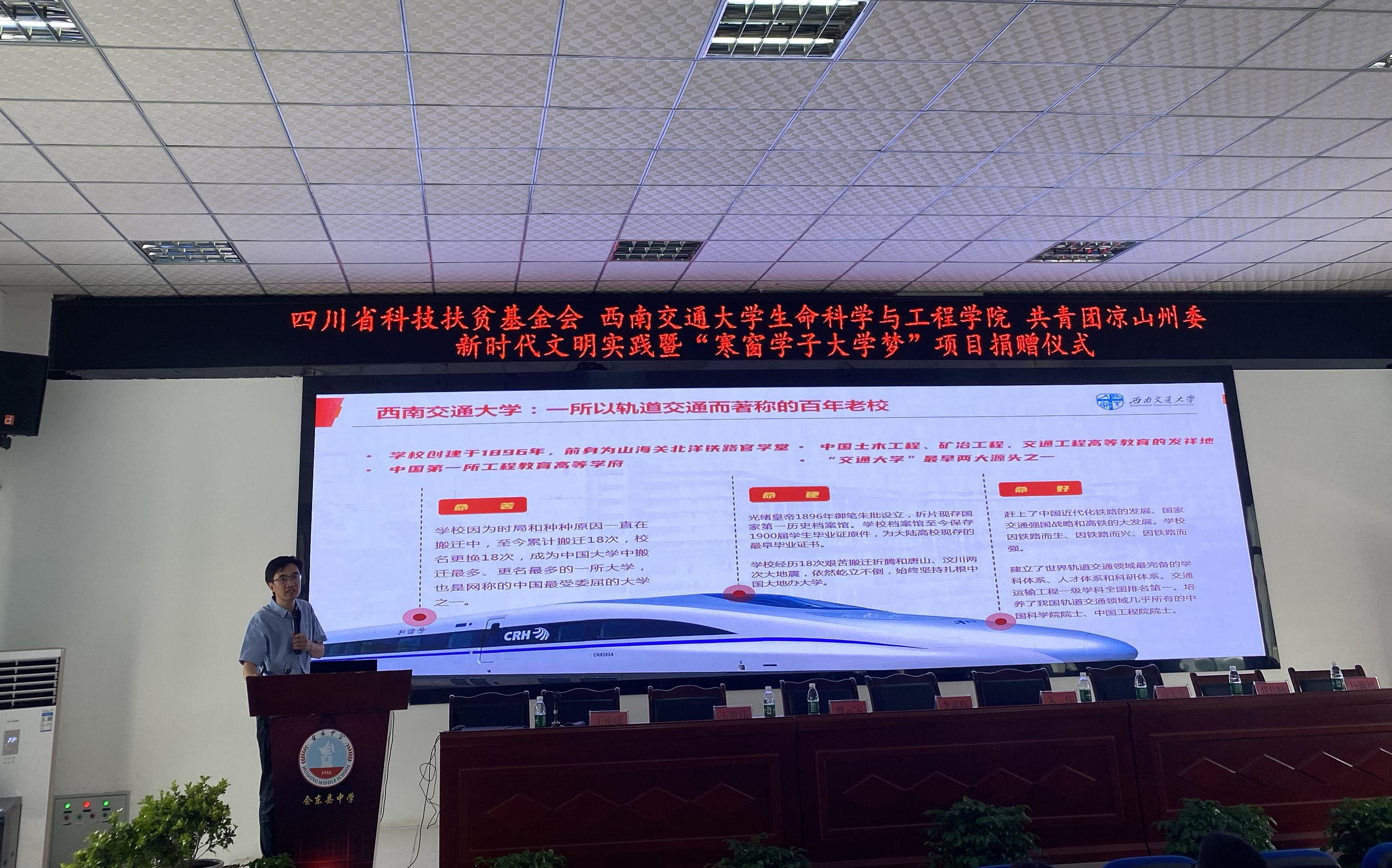“优质生源基地”授牌仪式,在四川省科技扶贫基金会的支持下,为会东县中学、和文中学的50名高中生捐赠10万元的“寒门学子大学梦”项目助学金,为会东县堵格镇普塘小学、坪塘小学的200名幼教及小学生捐赠价值4万元的“山区孩子的科技包”。四川省科技扶贫基金会副理事长兼秘书长李嘉辉,西南交大爱迪影视