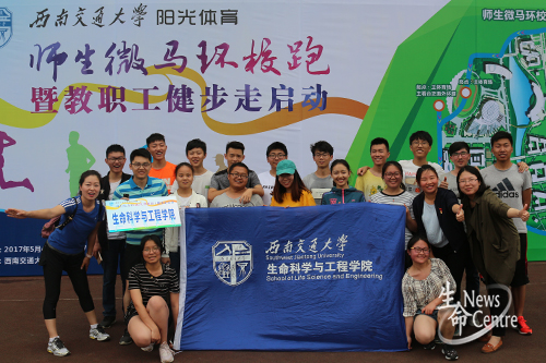 16:00,在体育部教师的带领下,参赛师生们进行热身运动。随后,在统一开跑指令发出后,老师与同学们或快走或慢跑,由北区田径场南门出发,沿环校公路开始运动。全程4千米的环校跑距离虽长,却阻挡不住师生们的热情。老师与学生并肩奔跑,坚持不懈,彰显“运动即是青春”的精神。