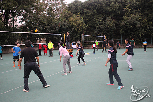 教职工排球赛正火热进行。10月12日17:30,在九里校区的排球场上,爱迪影视