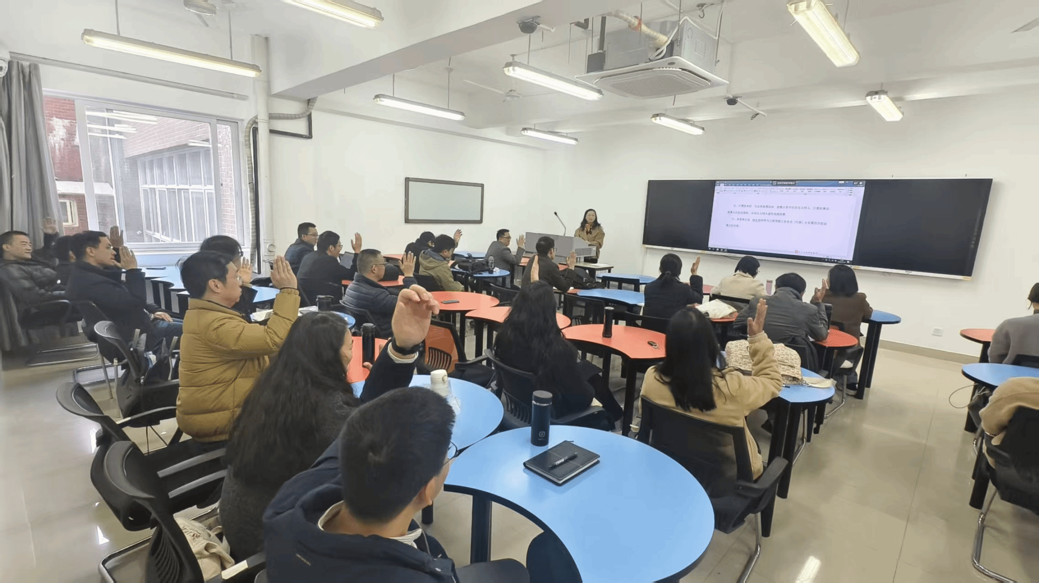 最后,学院党委书记黄春蓉作总结讲话。她首先代表学院党委向本年度“双代会”的成功召开表示祝贺,向新当选的工会委员表示欢迎,向全体与会代表致以衷心感谢。黄春蓉指出,当前学院正处在高质量发展的关键阶段,希望全体教职工代表继续发扬主人翁精神,围绕学院中心工作积极建言献策,共同推动学院各项事业高质量发展。黄春蓉还强调指出,希望学院工会发挥好桥梁纽带作用,在推进院务公开等方面进一步健全机制,细化举措,努力凝聚全院教职工的智慧和力量,为学院“十五五”发展目标的实现提供坚实保障。