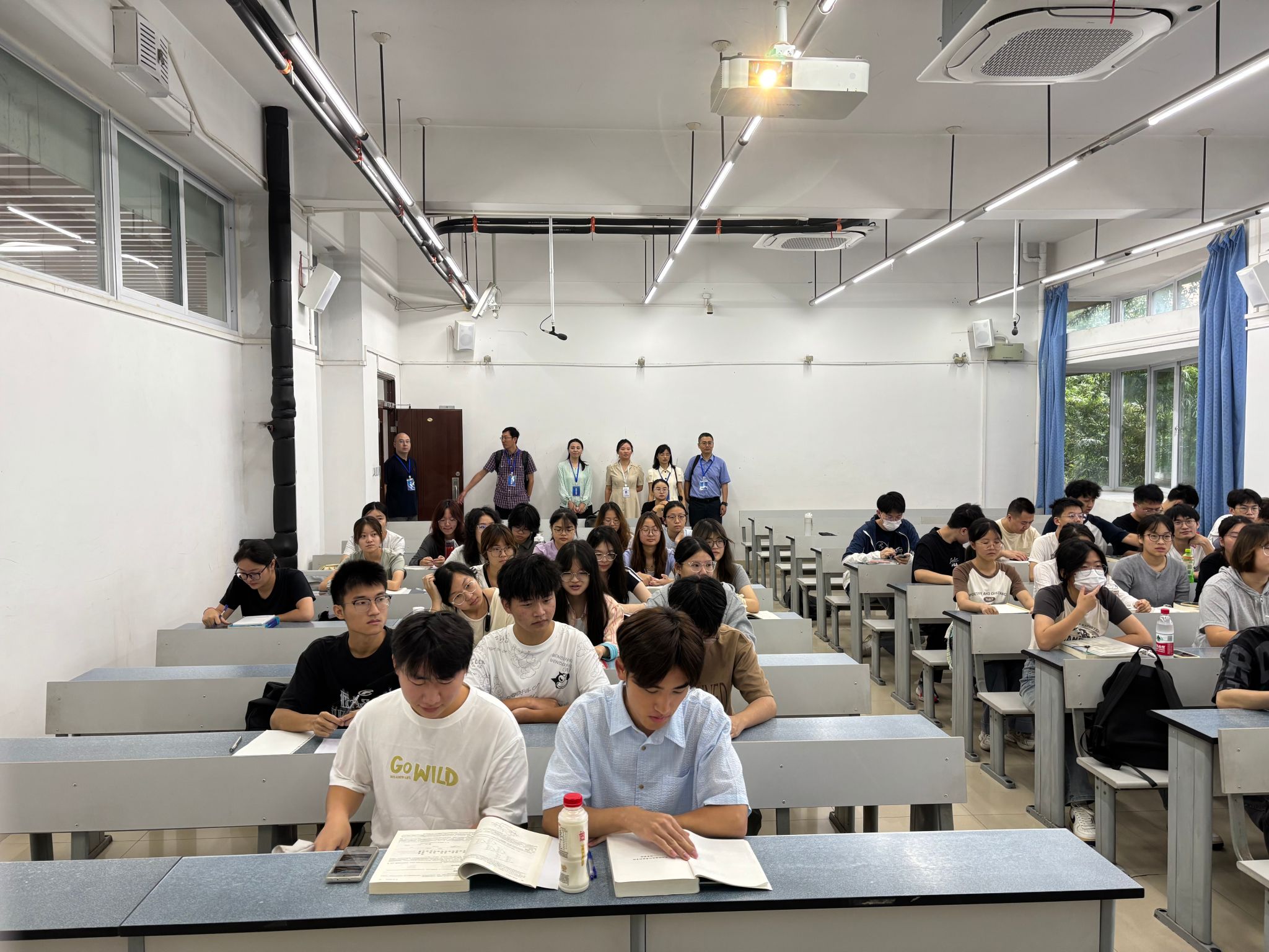 于9月8日组织开展了新学期教学检查。本次检查由学院党委书记黄春蓉、本科教学副院长陈琳带队,党委副书记高鹏、各系主任、副系主任及辅导员共同参与,组成检查小组深入课堂教学一线。