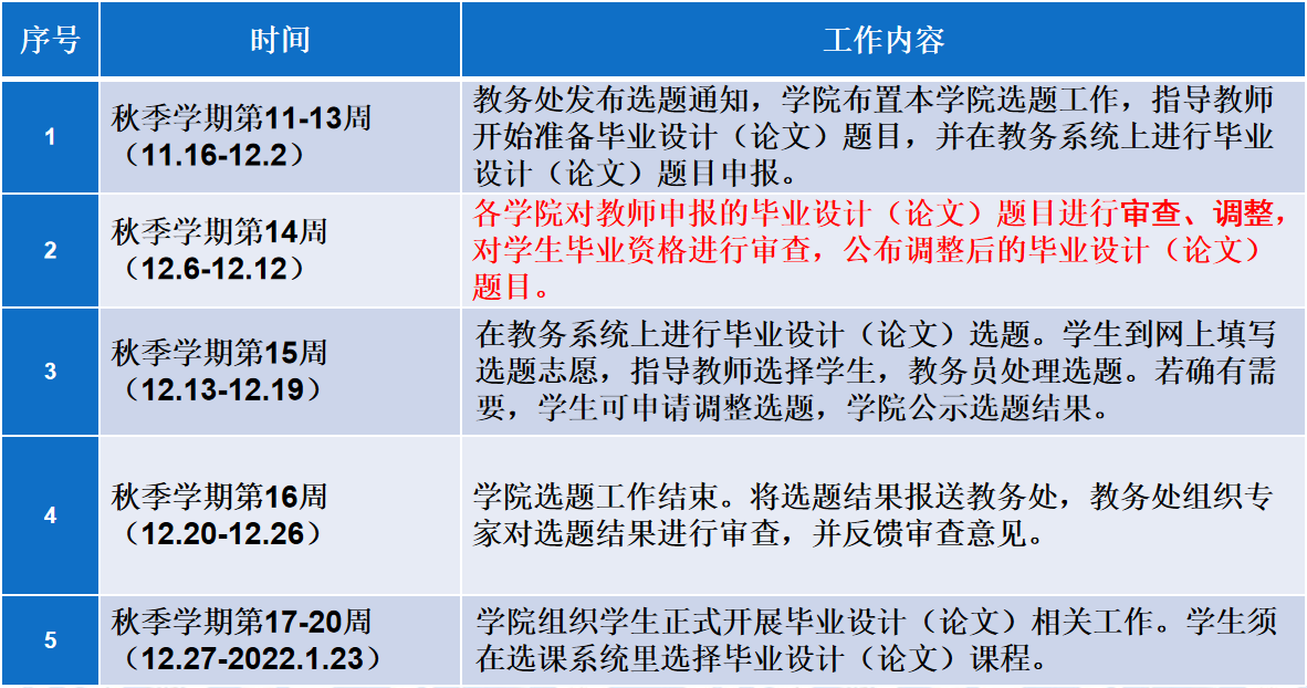 2、申请校外开展毕业设计的学生,仍然需要按照学校教务处要求,在本学期进行网上选题工作,确定校内指导教师。