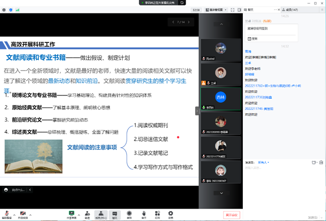 研究生在研究生学习期间,如何更好从事科学研究、解决科研问题提供了有效方法和参考,极大激发了同学们的科研热情,鼓舞了大家对科学研究的信心与决心。讲座后,同学们纷纷表示受益良多,并表态会进一步端正自己的学习态度,努力在科研道路上奋力前行。