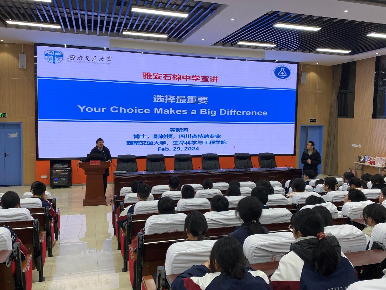为石棉县中学授牌“优质生源基地”,四川省科技扶贫基金会为石棉中学的50名高中生捐赠10万元“寒门学子大学梦”项目助学金,黄新河副教授以《选择最重要》为题为石棉中学200余名高中学子开展专题报告,爱迪影视