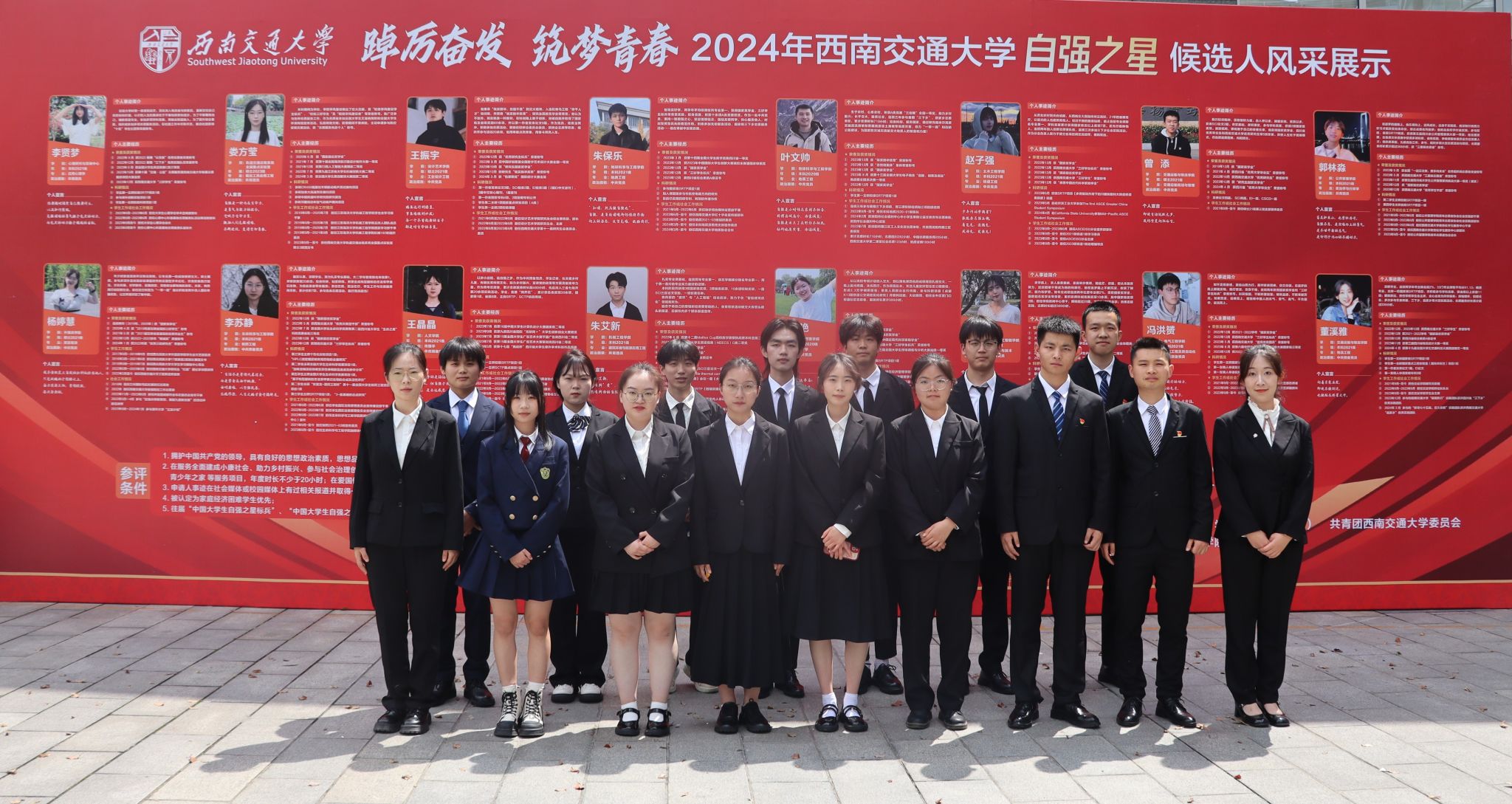 本次活动自2024年3月27日启动以来,经学生申请、学院推荐,共收到来自21个学院(中心、实验室)的25份报名材料,后经来自学工部、校团委及23个学院的评审老师进行材料评审和现场投票,产生包括12名本科生、4名研究生在内的16名候选人进入到终审答辩环节。