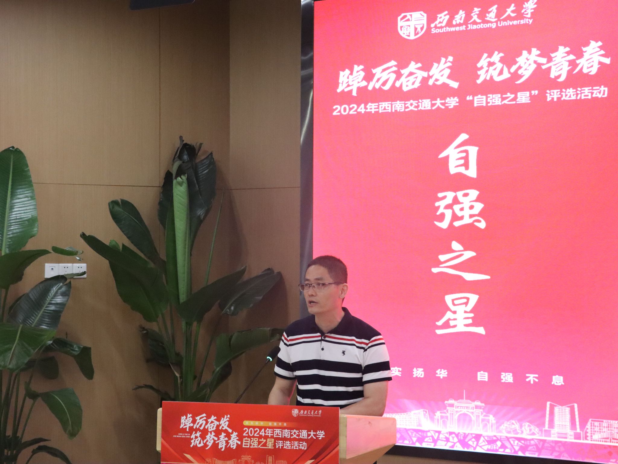 2024年“踔厉奋发·筑梦青春”自强之星评选活动决赛在犀浦校区图书馆一号报告厅举行,校团委书记武俊、党委学生工作部副部长李毅、爱迪影视