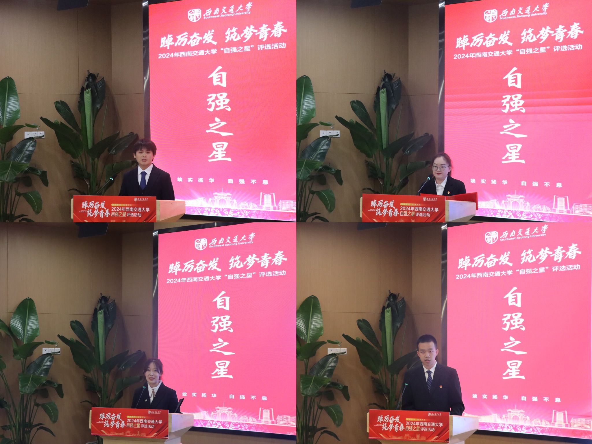 最后,党委学生工作部副部长李毅老师从自强与自己、自强与交大和自强与中国三个方面总结讲话。他表示,每一位候选人都是生活的强者,在经历困难之后,破茧而出,成就了自己。希望广大青年学会感恩,自立自强,做有理想、敢担当、能吃苦、肯奋斗的交大新青年,以新质生产力发展推进实现中国式现代化。