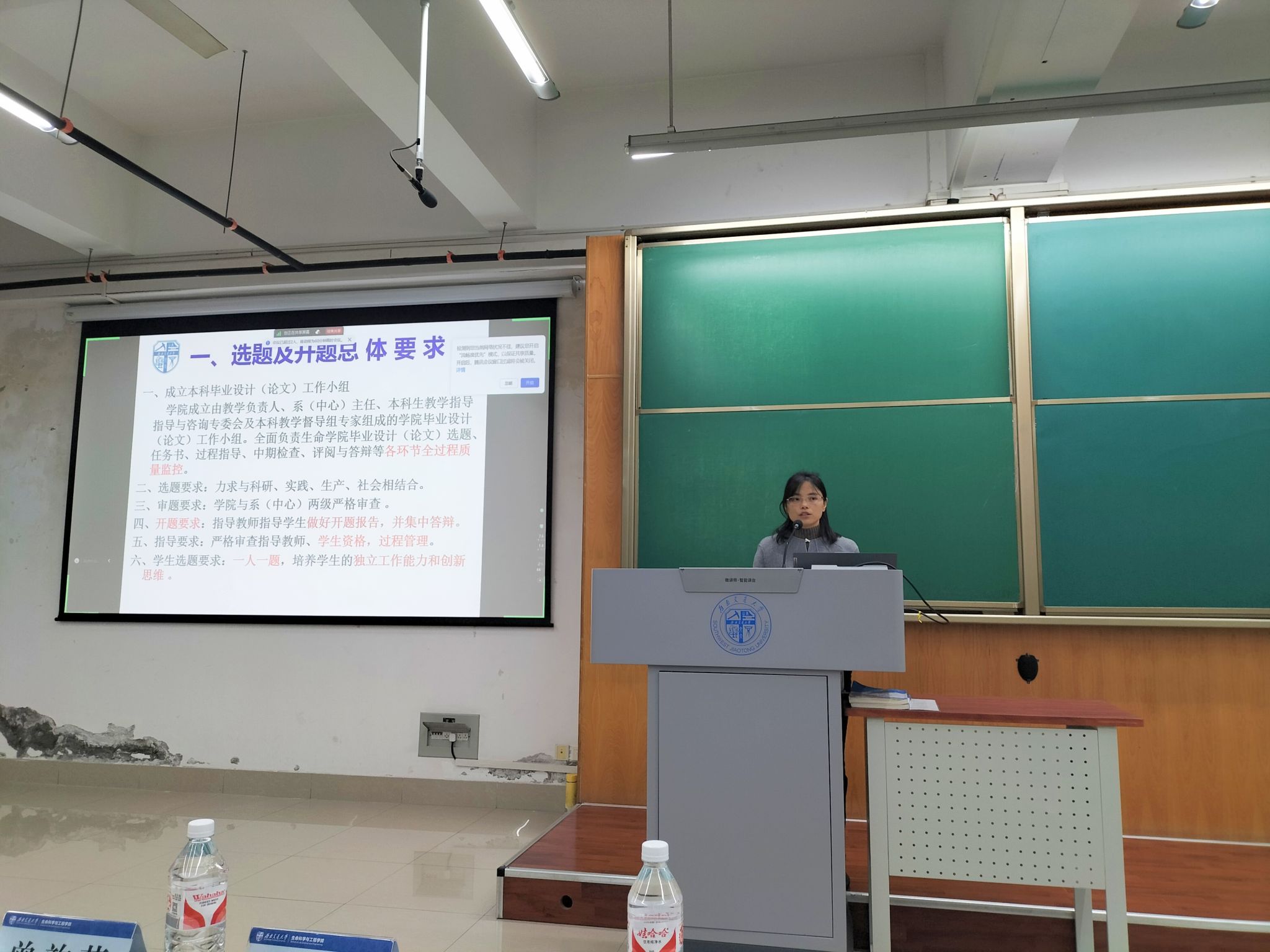2025届本科生毕业论文(设计)动员大会暨考研动员大会于犀浦校区X4350召开。学院党委书记黄春蓉、副院长陈琳、本科生教务员王瑾、药学系老师李羿、中公教育特邀讲师杨瑞、2025届本科毕业生辅导员胡慧怡、曾韵芝及全体2025届本科毕业生参加会议,会议由胡慧怡主持。