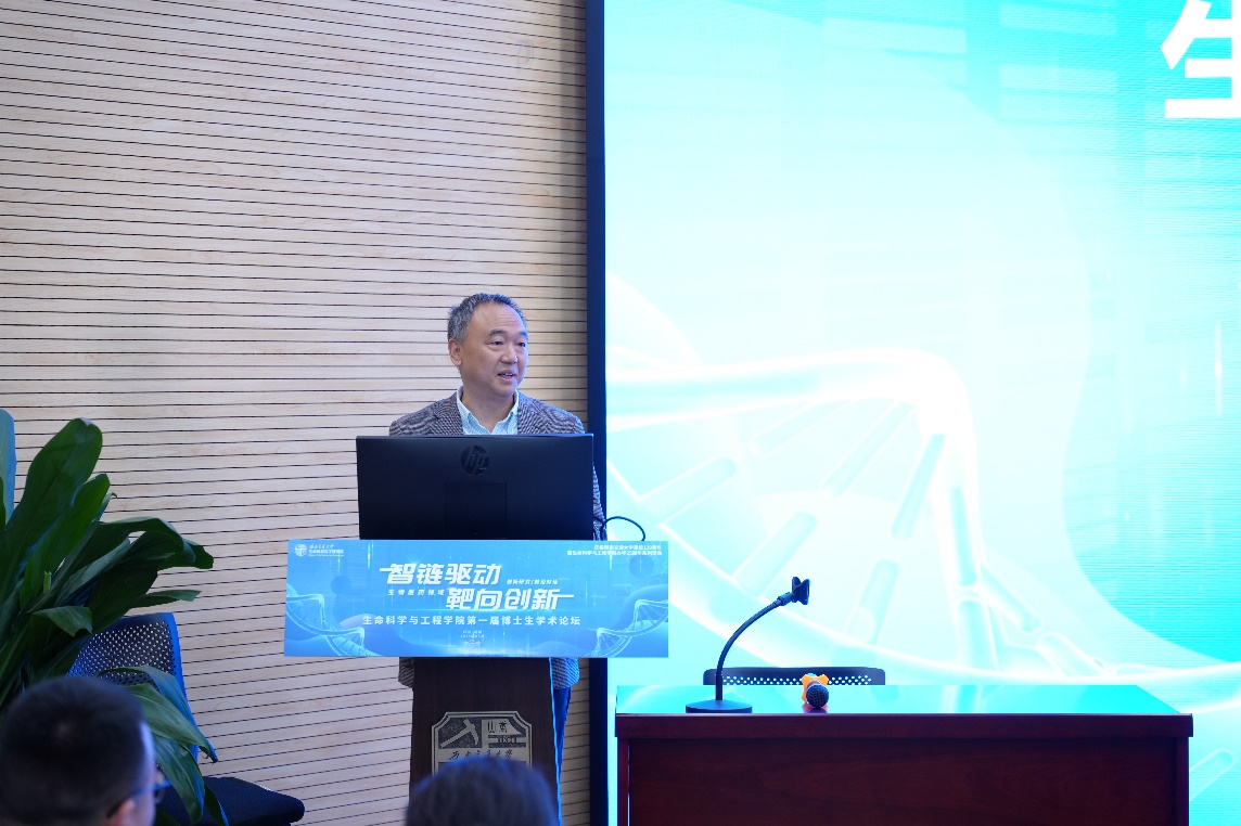 院长周先礼教授在致辞中回顾了学院从2000年生物工程系到2008年正式建院的发展历程,他表示,25年来学院始终与国家战略同频共振,形成了生物学、药学、生物与医药等多学科交叉的学科群,并在天然药物仿生合成、微纳生物技术等领域取得重要突破。周先礼特别向长期以来关心支持学院发展的校友们致以衷心感谢,并寄语研究生,要"以智链驱动创新、以交叉赋能科研"。