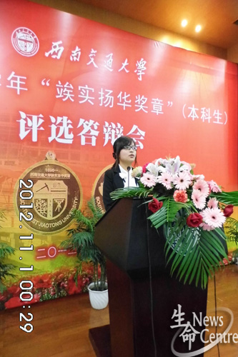 邱槿怡就自己的大学奋斗历程作了简要回忆,从她自信的演讲中展现出她极强的学习能力和工作能力,为其此次评选成功奠定了坚实的基础。自2009年09月至今,她成功攻读外国语学院英语专业双学位,在此期间,她先后担任过爱迪影视
