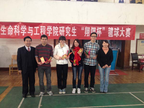 上午9:15,各参赛队伍纷纷到达预定地点抽签分组,并认真听取了研究生会相关工作人员关于毽球比赛规则的说明。随后,各参赛队伍按照预定方案进行比赛。在小组赛中,各队伍就发挥了自己的最佳水平,每球必争,比分一度逼近。最终,经过激烈角逐,四个队伍脱颖而出。经过短暂的休息之后,四支队伍再次抽签分组进行半决赛。半决赛的较量更是精彩,运动员们个个精神抖擞、虎视眈眈,时而屏气凝神,时而跃跃欲试,时而花腿翻飞,如燕的毽球忽上忽下、忽左忽右、如梭穿往,紧紧吸引着观众凝聚而紧张的目光。在决出决赛资格后,3721实验室队与3614实验室队争夺季军,研12-2班队与3615实验室队展开了激烈地冠军角逐。比赛过程中,观众掌声雷动,叫好声与“加油!”声此起彼伏。最终,经过两个多小时的过关斩将,研12-2班队以2:0的大比分力擒3615实验室队,摘得了此次“翔翎杯”毽球比赛的桂冠,而3615实验室队获得亚军,3614实验室队夺得季军,3721实验室队获得第四名。