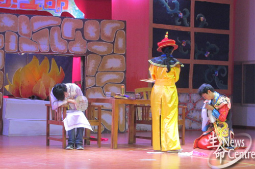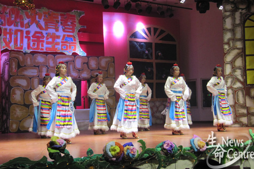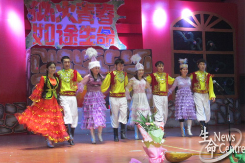 各民族同学团结向上的精神风貌;生信1班带来具有新意的节目人影戏《弄影》,在短短几分钟内,同学们就将狄仁杰、李元芳、许仙、孙悟空等荧屏角色呈现在舞台上,展现了“那些年我们一起追过的经典”,唤起了同学们儿时的回忆;生工二班的小品《甄嬛新传》笑料百出;制药二班为大家带来的集体舞《青春逆袭》让人目不暇接;更有研究生独唱《红玫瑰》,让观众感受到生命学子的别样温情。