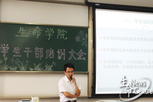 团委书记崔健老师和副书记孔琳老师组织讲说,各党支部干部及学生组织干部按时参加了本次培训会。