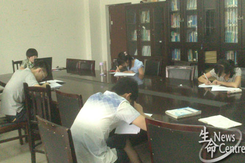 14:00—15:45在X2105办公室由学生会现任主席任静主持,进行了主席团换届竞选的笔试工作。