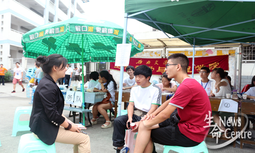 迎新期间,有四个特殊志愿者——他们是新生却从不把自己定位成学弟,他们积极投身迎新工作之中,他们将志愿服务精神演绎得淋漓尽致,帮忙接送新生,端茶置座服务家长,他们蓬勃的朝气深深感动了所有志愿者!
