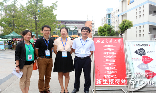 迎新现场了解迎新情况,并与在场咨询的新生深切交谈——首先表示欢迎,其次询问新生报考交大的原因及来校后的感受等,新生倍感温暖。