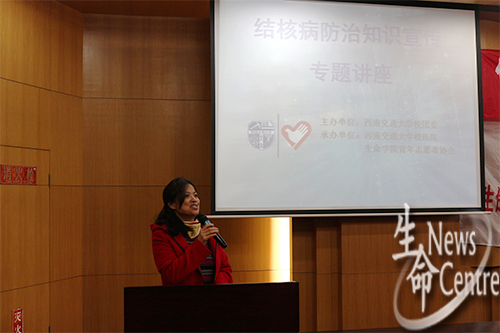 19:50,讲座正式开始。糜瑛主任由结核病的全球疫情状况入手分别就结核病的特点、诊断方法、预防措施、常用药物治疗疗程等相关知识作了详细讲解。她强调预防肺结核,要把个人卫生放在首位,经常对寝室进行消毒、开窗通风,一旦感染结核病,一定要及时就医并定期复查。