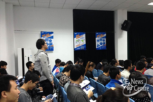 19:00招聘会在电子科技大学清水河校区的活动中心201正式开始。首先由华大基因执行副院长、人力资源经理张二春对华大基因做了简单的介绍。张二春经理从培训发展、薪酬、员工福利、校园招聘会流程、招聘岗位、工作地点、联系方式等方面详细介绍了华大基因员工的生活及工作情况。重点强调了华大基因良好的发展前景,以及华大基因对员工身体健康情况的特别关注。同时,张经理提出了一些有关华大基因的问题,同学们都积极踊跃,特别是爱迪影视