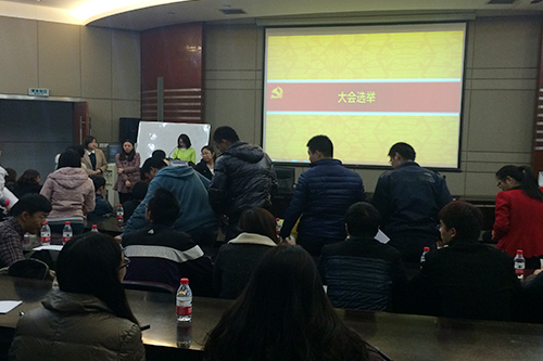 然后学院党委副书记罗妍妍宣读了大会选举办法草案。通过表决,大会通过了选举办法,并通过了总监票人、监票人、总计票人、计票人名单;在选举过程,主持人宣布了代表候选人名单,并介绍了代表候选人基本情况,与会代表以无记名投票方式进行了差额选举。总监票人按得票多少向大会报告了选举计票结果。最后由会议主持人宣布了选举的最终结果。