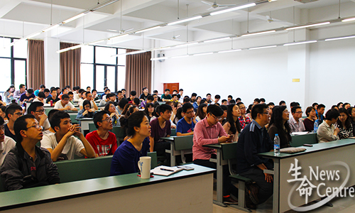 2013级、2014级同学。会议主要就生物信息技术、生物学和生物工程制药三个专业方向具体情况、前景等内容进行详细介绍。本次会议由喻凯老师主持。