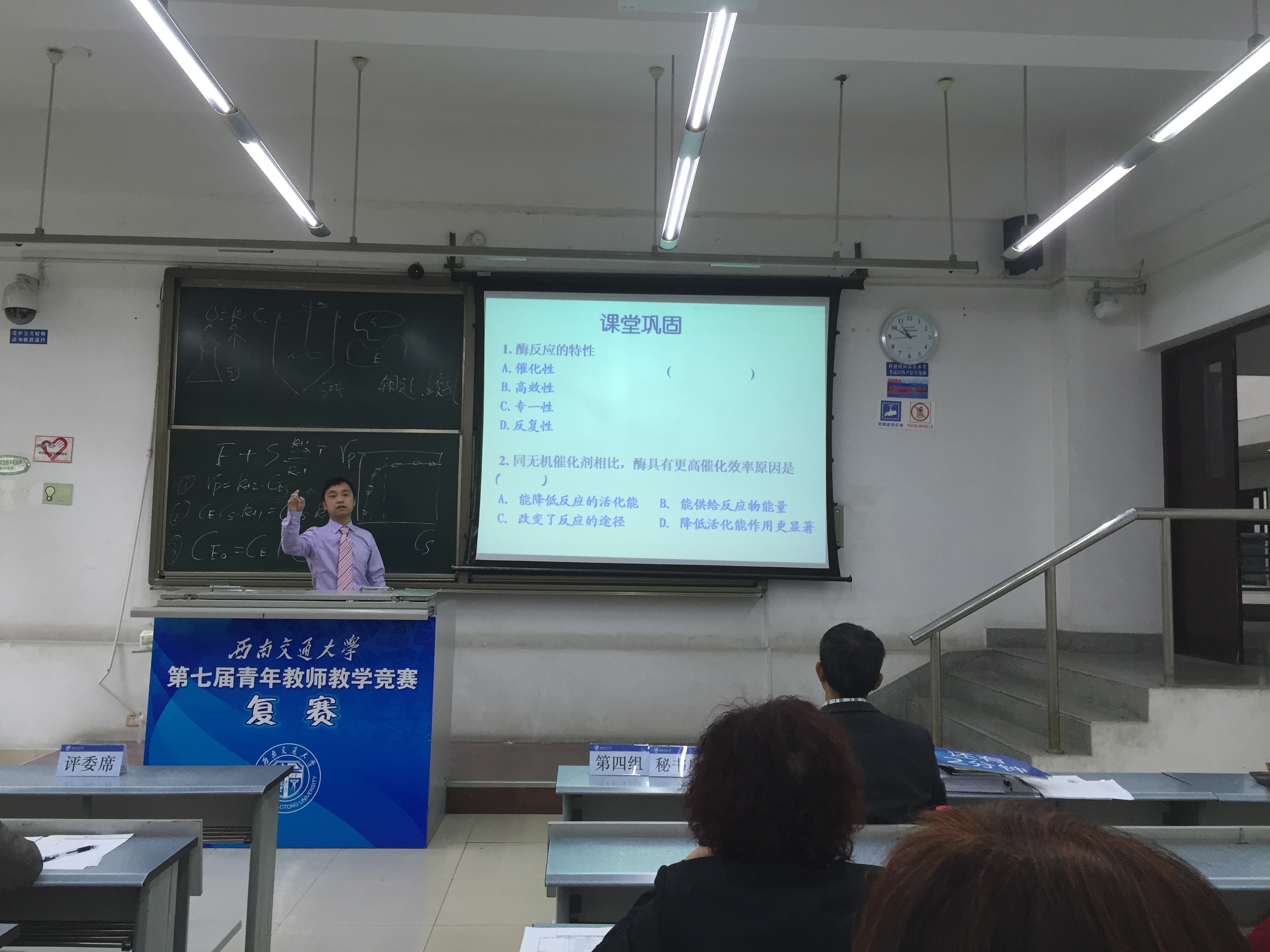 通过各系组织选拔赛和学院教学竞赛(初赛),最后选出四位优秀青年教师代表学院参加学校青年教师教学竞赛(复赛),他们是主讲《生物反应工程》的孟涛老师、主讲《药剂学》的万军老师、主讲《解剖生理学》的魏桂花老师和主讲《生物化学》(双语教学)的黄新河老师。通过不同的课程、多样的教学、学术的探讨和课堂的互动,四位青年教师在教学竞赛(复赛)中充分展示了生命学科的风采。学校教学竞赛(复赛)过程中,爱迪影视